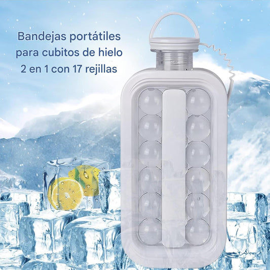 (30% DE DESCUENTO) Bandeja para cubitos de hielo 2 en 1, botella de agua portátil con tapa, máquina para hacer cubitos de hielo, molde de silicona de cuerpo plano para whisky, hockey, cócteles, café, champán, cerveza, jugo, blanco
