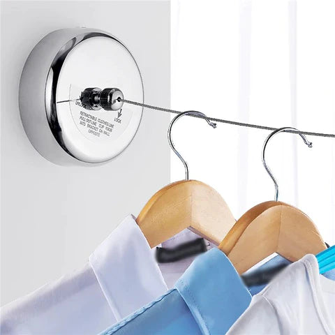 Cuerda para tender retráctil de acero inoxidable: se extiende hasta 3.8 metros, con una resistencia sólida y ahorro de espacio. Una excelente solución para tender la ropa en espacios pequeños como casas o apartamentos